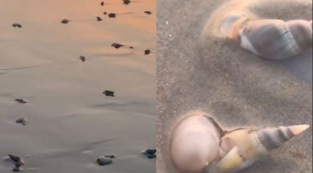 ପୁରୀ ସମୁଦ୍ର କୂଳରେ ବିଚରଣ କରୁଛନ୍ତି ହଜାର ହଜାର ସଂଖ୍ୟାରେ ଜୀବନ୍ତ ଶାମୁକା